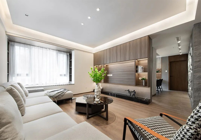 • 145㎡簡約風(fēng)三人居 無主燈設(shè)計+仿石材真get